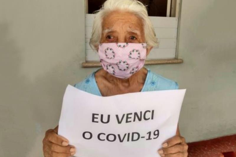 Na foto, a lembrança da história da idosa de 91 anos que se curou da covid-19 em Belém (PA):