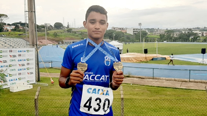 11/12/2020 Gustavo Felipe de 15 anos conquistou duas medalhas para Tupã no Campeonato Paulista Caixa de Atletismo sub-16.