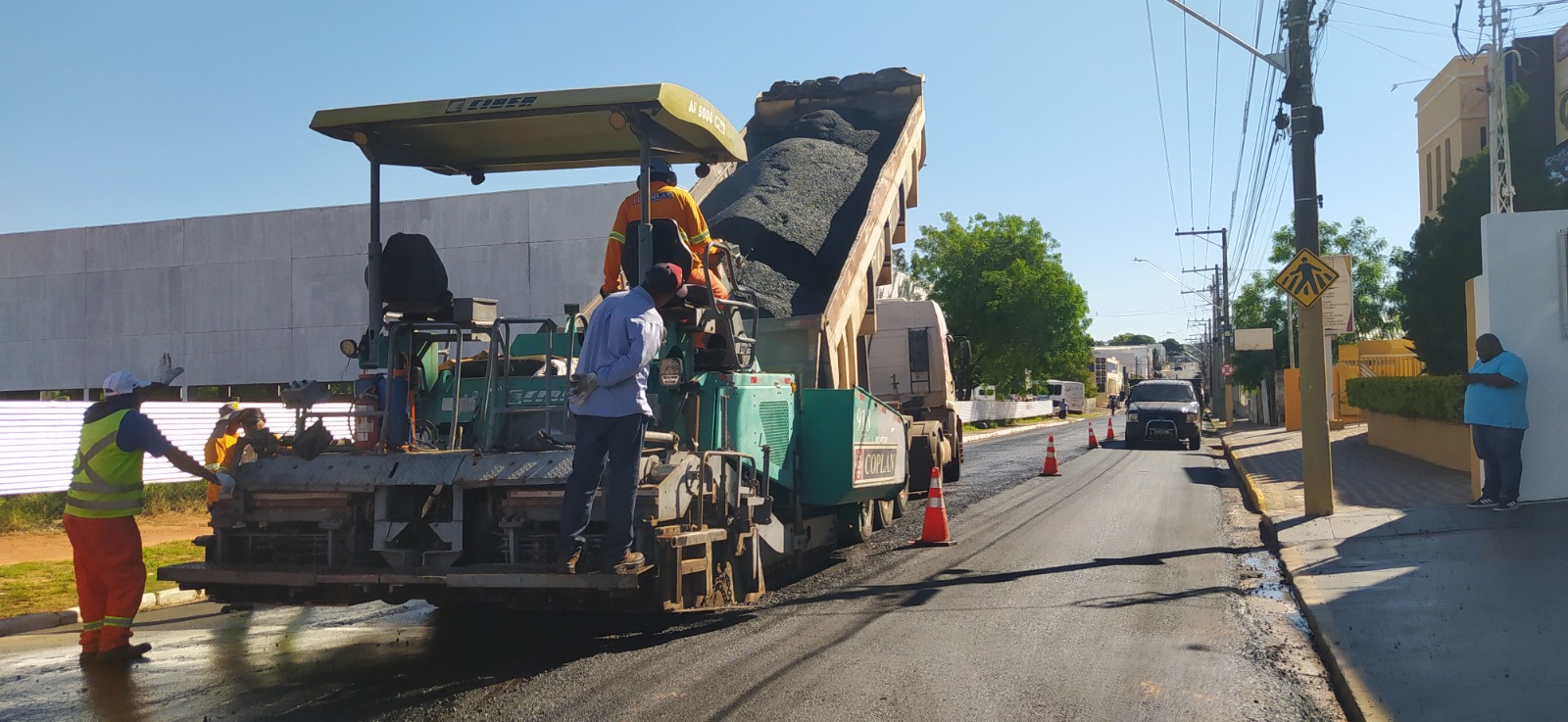 Rua Brasil passa por recapeamento em trecho próximo à escola Joaquim Abarca