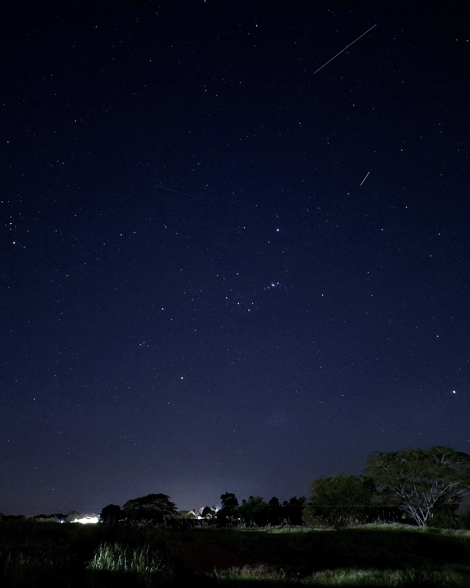 O tupãense Eduardo Dantas conseguiu fotografar dois meteoros quase simultâneos enquanto realizava registros da constelação de Órion, conhecida popularmente por "Três Marias".