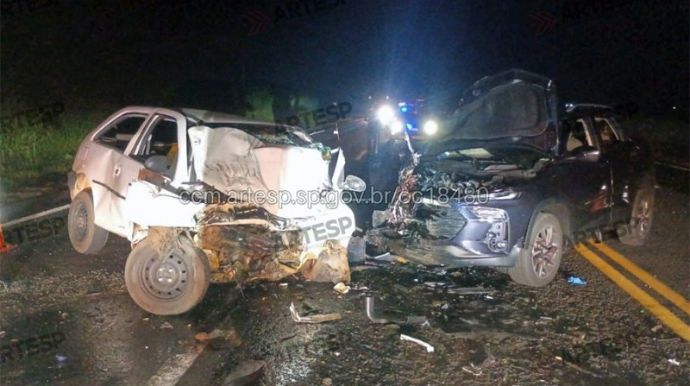 Um grave acidente registrado na noite deste domingo (8) terminou com duas mortes na Rodovia Comandante João Ribeiro de Barros (SP-294), no trecho do município de Herculândia, na região de Tupã. A colisão frontal envolveu um SUV Tracker e um automóvel Gol, por volta das 19h, na altura do km 514 da rodovia.