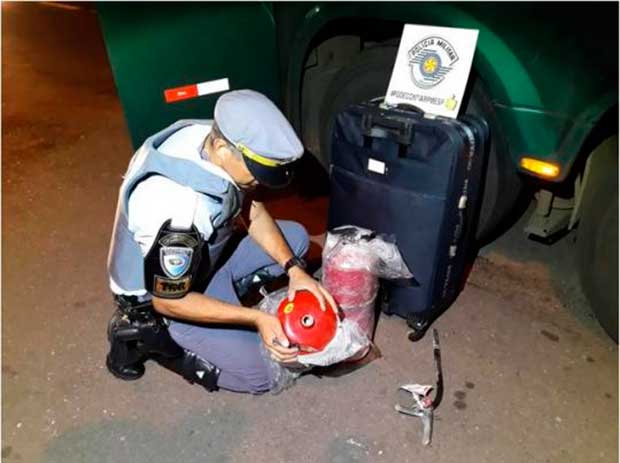 A Polícia Militar Rodoviária apreendeu 18 tabletes de cocaína que eram transportados dentro de extintores. O material foi encontrado em um ônibus que foi abordo na madrugada desta terça-feira (5), na Rodovia Raposo Tavares (SP-270), em Presidente Venceslau. Um peruano, de 39 anos, morador de Corumbá (MS), foi preso. Em fiscalização de trânsito, policiais rodoviários abordaram um ônibus, que fazia o itinerário Campo Grande (MS) – Uberaba (MG), e ao vistoriarem o bagageiro externo do coletivo, encontraram em uma mala dois extintores de incêndio, que continham em seu interior 18 tabletes e seis invólucros de cocaína, que pesaram 12,548 quilos. Conforme a polícia, o peruano alegou que sabia da existência da droga no interior dos extintores e que a levaria até a Rodoviária do Tietê, em São Paulo (SP), onde a entregaria e receberia pelo transporte por um valor ainda a ser combinado. O indivíduo ainda relatou aos policiais que pegou a droga em Puerto Quijarro, na Bolívia. Com os fatos, o passageiro proprietário da mala recebeu voz de prisão em flagrante por tráfico de droga e foi conduzido à Delegacia da Polícia Federal de Presidente Prudente, onde permaneceu em cárcere para ser apresentado em audiência de custódia.