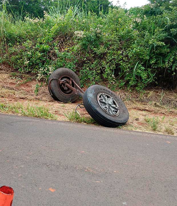 Com o impacto, um dos eixos do caminhão foi arrancado. Frente do carro ficou destruída.