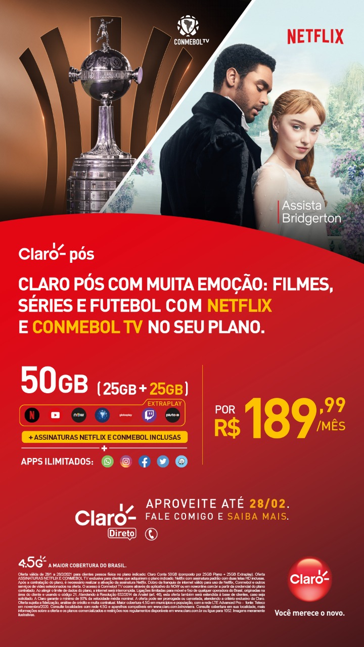 Para os clientes que obtêm o Claro Controle/Pós com a Netflix inclusa ainda há uma novidade, além de acesso em alta definição das imagens, o plano inclui uma segunda tela. Com isso, você e mais uma pessoa podem utilizar a conta para assistir simultaneamente e franquia de internet adicional para assistir suas series ou filmes favoritos.