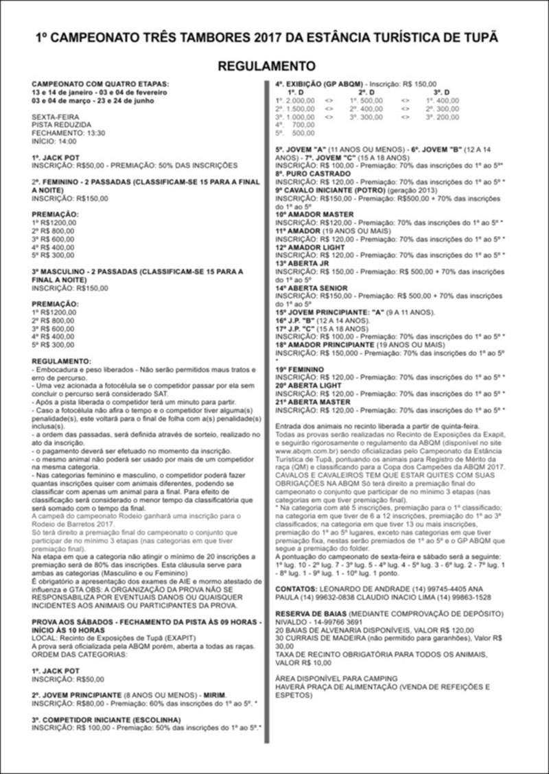 10/01/2017 O evento terá quatro etapas e acontecerá no recinto da Exapit.