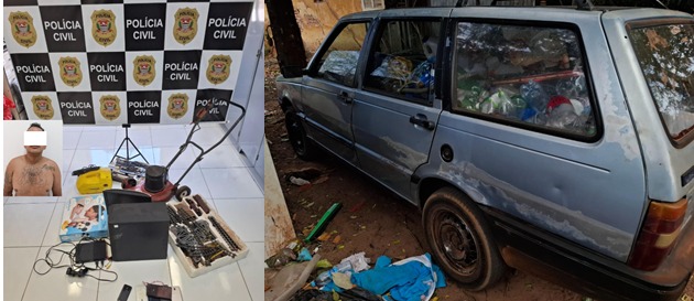 De acordo com as investigações, o crime foi praticado durante a noite, quando o suspeito retirou diversos objetos de uma residência, utilizando um veículo Fiat Elba conduzido por uma mulher para transportar os bens furtados.