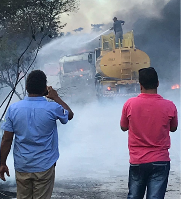 O Corpo de Bombeiros de Osvaldo Cruz atendeu na tarde deste domingo (24), uma ocorrência de acidente de trânsito na Rodovia Assis Chateaubriand, km 355, entre Rinópolis e Santópolis. Dois veículos se envolveram no acidente, sendo uma carreta Bi-trem de Santa Fé/PR carregada de cimento e um caminhão Baú de Itajaí/SC vazio. Após a colisão, os veículos pegaram fogo. O motorista do Bi-Trem não se feriu, já o motorista do caminhão Baú foi socorrido com ferimentos leves. Ele foi levado para o Pronto Socorro de Rinópolis onde recebeu os devidos cuidados. Estiveram trabalhando no local a Policia Rodoviária, o DER e o Corpo de Bombeiros de Osvaldo Cruz. Também apoiaram a ocorrência três caminhões Pipa da Usina Clealco.